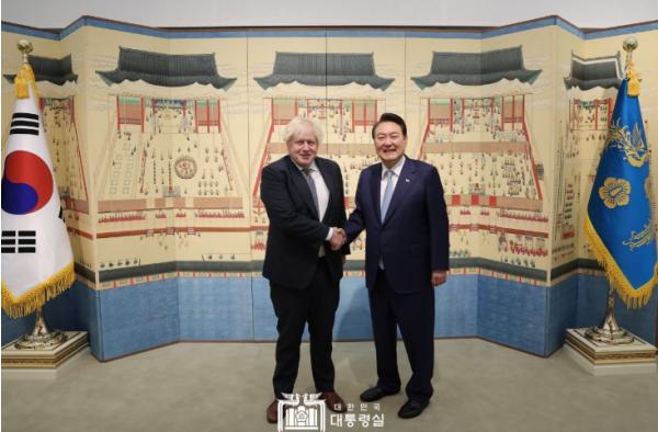 이에 존슨 前 총리는 자유, 인권, 법치의 가치를 공유하는 우방국 간 협력이 중요하다고 했다. 또한, 작년 NATO 정상회의 계기 스페인 마드리드에서 대통령과 정상회담을 갖고 한-영 간 '보다 긴밀한 협력을 위한 양자 프레임워크(Bilateral Framework for Closer Cooperation)'를 채택하여 양국 협력의 기반을 마련한 것을 의미있게 생각한다고 했다.