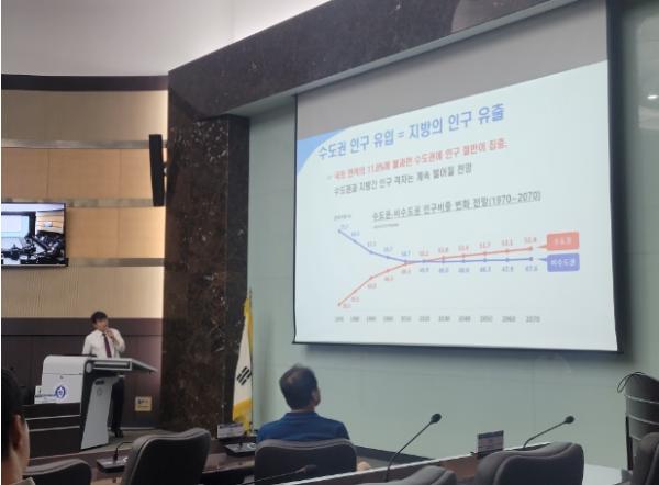 이날 강의에서 문진석 의원은 "충청권 시군구의 63%가 소멸위험지역을 분류되고, 충남과 충북의 지역소득이 전국에서 가장 많이 유출될 만큼 충청권 지방소멸이 현실화되고 있어 대책 마련이 시급하다"고 했다. 그러면서 "돈이 모이면 사람이 모이고, 사람이 있는 곳에 다시 사람이 모인다"며 "일자리·문화·교육·의료 등 지역의 매력도를 높여 지역에 사람이 모이고 활력이 넘치게 해야 한다"고 말했다.