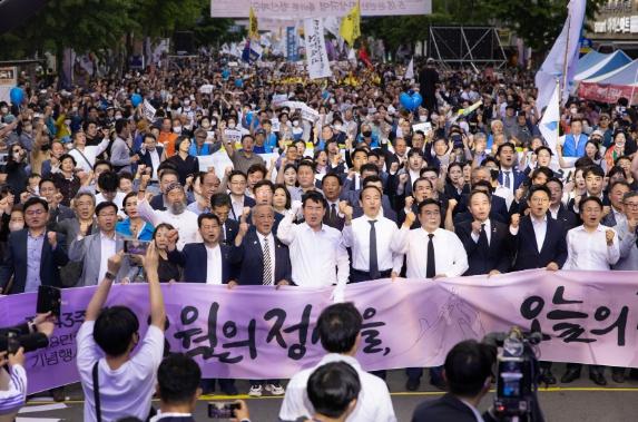 이정선 교육감을 비롯한 시교육청 직원들은 수창초등학교에서 전일빌딩까지 이어진 ‘민주평화대행진’에 함께했다. 이들은 ‘오월의 정신을, 오늘의 정의로! 오월의 정신, 전국화를 넘어 세계로’, ‘다시 민주주의!’ 등 플래카드와 피켓 등을 들고, 5·18 민주화운동의 완전한 진상규명과 헌법전문 수록을 촉구했다.