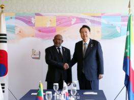 대통령은 코모로와 같은 인도양 아프리카 국가들이 우리 인도-태평양 전략의 중요한 동반자임을 강조하면서 54개국으로 이루어진 아프리카 공동체와의 파트너십이 더욱 중요해지고 있다고 말했다. 특히, 한국이 2005년부터 AU의 옵저버 자격을 얻은 후 한-AU 협력기금과 AU 정무평화국 활동지원 등을 통해 농업, 보건, 청년 인적자원 개발과 같은 다양한 분야에서 아프리카의 발전을 위해 협력해오고 있다고 언급했다.