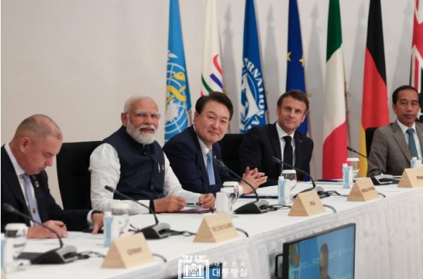 윤 대통령은 이날 경제와 관련된 제1, 제2 세션에 참석해 글로벌 중추국가로서 G7과 연대·협력해 취약국과 개도국을 지원해 나갈 것을 천명했다고 대통령실 최상목 경제수석이 브리핑을 통해 설명했다.?