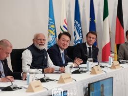 먼저, G7 확대 정상회의의 핵심 협력 의제인 농업·식량 분야 협력과 관련해 대통령은 과거 국제사회로부터 식량원조를 받은 우리의 경험을 언급하며, 취약국의 식량 지원에 앞장서겠다고 강조했다.