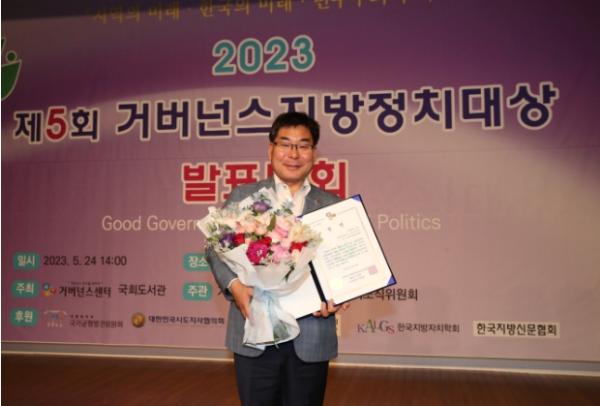 사단법인 거버넌스센터에서 주최하고 대통령 직속 국가균형발전위원회, 한국지방신문협회 등에서 후원하는 ‘거버넌스 지방정치대상’은 거버넌스 구현 · 성취도 · 혁신 파급성 · 창의성 · 참신성 · 자기계발 등을 평가해 올바른 자치분권 확산과 지방정치 인식 제고에 기여한 자치단체장과 지방의원을 대상으로 상을 수여한다.