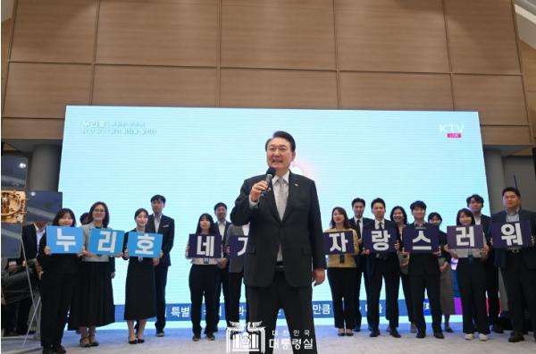 한편, 대통령은 오늘 누리호 3차 발사 성공을 기념하며 대통령실 2층 누리홀에서 참모진과 격려 만찬을 했다. ‘누리홀’은 작년 6월 21일 누리호 2차 발사 성공을 기념하여 붙여진 명칭이다.