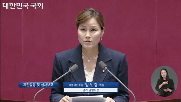 이날 임의원은 국회 본회의에서 본인이 대표 발의한 법률안 포함 문체위 소관 법률안에 대해 심사보고 및 제안설명을 직접 하기도 했다.