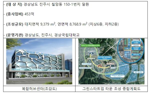 최종 선정된 경상남도 진주시는 “도시재생 G-그린 디지털 스퀘어”라는 사업명 아래, “지역혁신과 성장을 선도하는 젊은 경남의 미래, 경남 그린 디지털 산업의 Think Tank 플랫폼”이라는 컨셉으로 그린스타트업 타운을 조성할 계획이다.