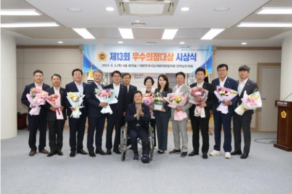 올해 13회째를 맞은 우수의정대상은 대한민국시도의회의장협의회에서 도민의 삶의 질 향상과 지방자치 및 지역사회 발전에 공헌한 의원들에게 수여하는 상이다.