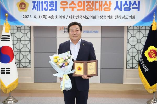 우수의정대상은 대한민국 시도의장협의회가 지역주민의 삶의 질 향상과 지방의회 발전에 이바지하는 등 우수한 의정활동을 펼친 의원에게 수여하는 상이다.