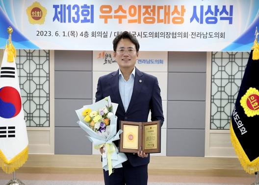 우수의정대상은 대한민국 시도의장협의회가 지역주민의 삶의 질 향상과 지방의회 발전에 이바지하는 등 우수한 의정활동을 펼친 의원에게 수여하는 상이다.