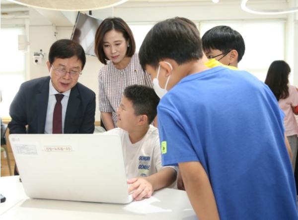교육위원회 소속 이종태·이새날 의원을 비롯하여 조희연 서울시교육감과 교육관계자 등이 신성초등학교 4학년 교실을 방문하여 태블릿PC, 노트북 등으로 챗GPT를 활용하는 인공지능 융합 수업을 참관했다.