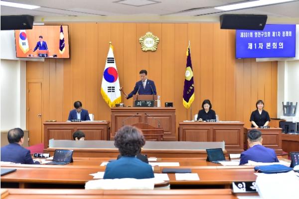[중앙뉴스라인, 이승훈기자] 양천구의회는 13일 오전 11시 제301회 양천구의회 제1차 정례회를 개회하고, 제1차 본회의를 열었다.