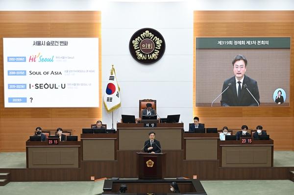 [중앙뉴스라인, 이승훈기자] 14일, 서울특별시의희 박유진 의원(더불어민주당, 은평구 제3선거구, 행정자치위원회)은 본회의장에서 열린 시정질문에서 서울시 슬로건 교체와 관련하여 브랜드 슬로건 역할에 대해 집중 질의했다.