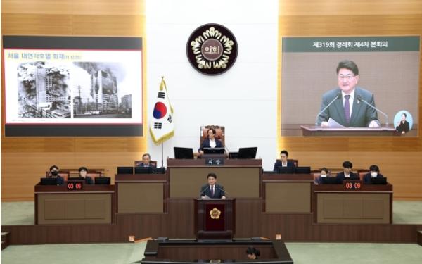 [중앙뉴스라인, 이승훈기자] 서울시의회 홍국표 의원(국민의힘·도봉2)은 15일 제319회 정례회 제4차 본회의에서 ‘2040 서울도시기본계획’으로 인해 증가하게 될 50층 이상 초고층아파트의 화재 예방 및 대응 대책 마련을 촉구하는 5분 자유발언을 진행했다.