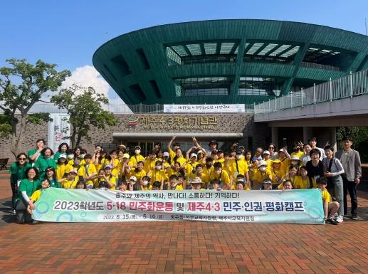 [중앙뉴스라인, 백흥순기자] 광주동부교육지원청이 제주시교육지원청과 함께 지난 15~16일 광주와 제주 초등학생 60명 대상으로 제주특별자치도 일대에서 2023년 5·18민주화운동 및 제주 4·3민주·인권·평화체험 캠프를 진행했다.