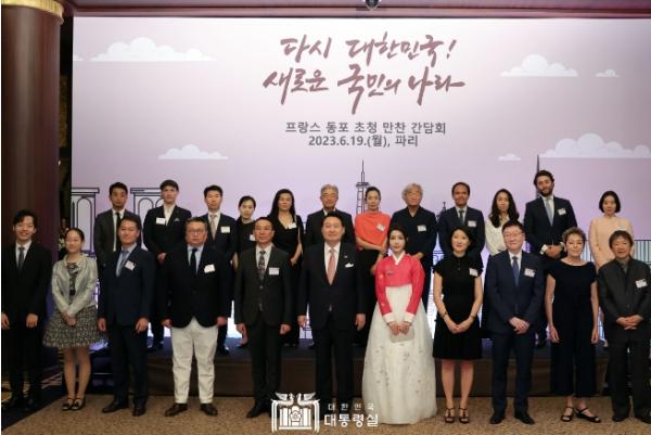 [중앙뉴스라인, 우제헌기자] 프랑스를 방문 중인 윤석열 대통령은 김건희 여사와 함께 6.19일 현지 동포를 초청하여 만찬을 겸한 간담회를 가졌다. 이번 간담회에는 한-불 다문화 가정 동포, 입양 동포를 포함하여 각계 각층에서 활약 중인 동포 100여 명이 참석했다.