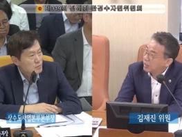 본부장은 '서울특별시 아리수 음수대 설치ㆍ관리 및 병물 아리수 사용에 관한 조례'에 의해 재난ㆍ단수시에만 병물아리수를 최소한으로 제공하도록 되어 있다라고 했으나, 김재진 의원은 재난은 가뭄, 홍수, 태풍 등 자연현상의 변화로 인한 인명이나 재산의 피해를 뜻하며, 폭염도 기후변화로 인한 자연현상이며, 인명피해를 줄 수 있는 상황이므로병물아리수의 제공이 가능할 것이다라고 해석한 것이다. 또한 조례상 일회용 페트병 사용을 줄이기 위해 병물아리수 제공을 제한한 것인데, 앞으로 재생페트를 이용하여 생산할 계획이므로 병물아리수의 제공확대가 가능하도록 해야하며, 김재진 의원은 조례 개정을 적극적으로 검토하여 추진하겠다고 밝혔다.