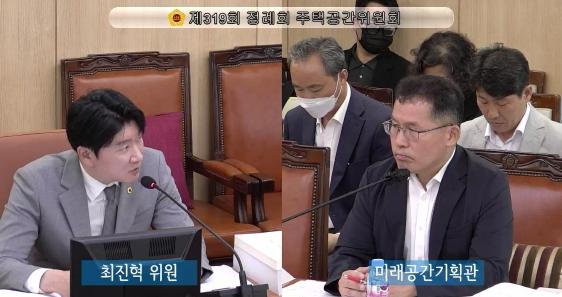 최진혁 의원은 먼저, 잠수교 보행화 추진은 “한강이 지향해야 할 미래 모습”이라며, 서울이 보행자와 자전거, 대중교통이 중심이 되는 친환경 미래 도시로 나아가야 한다는 데 있어 정책 취지에 동감한다고 했다.
