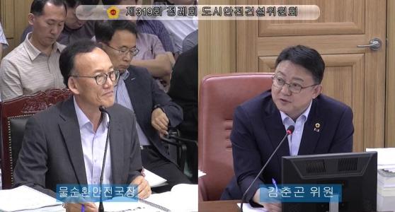 [중앙뉴스라인, 이승훈기자] 서울시의회 윤리특별위원회 위원장과 도시안전건설위원회 위원으로 활동 중인 김춘곤 의원(국민의힘, 강서4)은 21일 제319회 정례회 상임위 소관 물순환안전국 업무보고에서 개화육갑문 주변 점검 현황을 제시하고 장마 전 침수예방 조치를 주문했다.