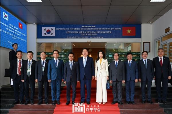 한편, 행사에 앞서 대통령 부부는 하노이 국가대 본관에서 레 꾸언 하노이 국가대학교 총장, 응웬 낌 선 베트남 교육훈련부 장관 등과 환담 시간을 가졌다.