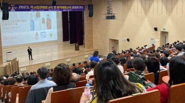 학생 건강을 해치는 흡연과 마약을 추방해 유해 약물로부터 안전한 학교를 만들기 위해 마련한 이번 연수는 교육지원청 교육과장과 교장, 교감 등 관리자 800명을 대상으로 진행됐다.