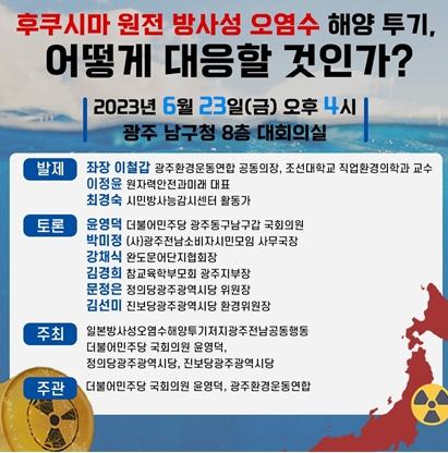 [중앙뉴스라인, 우제헌기자] 더불어민주당 윤영덕 국회의원(광주 동구남구갑, 국회 정무위원회)은 오늘 23일(금) 오후 4시 광주 남구청 대회의실에서 ‘후쿠시마 원전 방사성 오염수 해양 투기, 어떻게 대응할 것인가?’를 주제로 토론회를 개최했다.