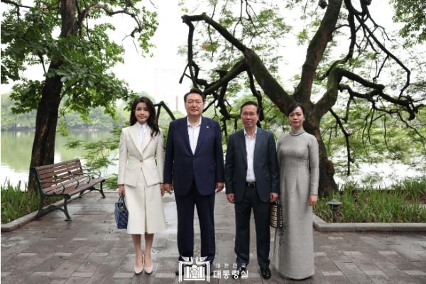 조찬 후 양국 정상 부부는 하노이 시민들의 쉼터인 호안끼엠 호숫가를 함께 거닐면서, 지난 30년간 눈부시게 발전해 온 양국 간 우정과 파트너십을 더욱 심화하고 발전시켜 나가자고 다짐했다. 윤 대통령 부부는 트엉 주석 부부의 따뜻하고 세심한 환대에 감사를 표하면서, 트엉 주석 부부가 조기에 한국을 방문하여 주시기를 바란다고 했다.