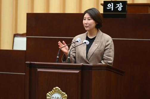 5분자유발언에서 김 의원은 해마다 반복되는 결산검사 지적사항에 따른 무성의한 조치계획 작성, 성과보고서의 성과지표 측정산식 일방적 변경 등에 대해 문제를 제기했다.