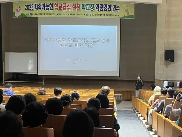 [중앙뉴스라인, 김병연기자] 광주교육시민협치진흥원설립추진단이 지난 27일 대강당에서 ‘2023 지속가능한 학교급식 실천 학교장 역량 강화’ 연수를 개최했다.