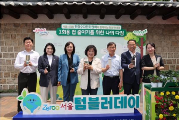 [중앙뉴스라인, 이승훈기자] 서울시의회 환경수자원위원회 봉양순 위원장(더불어민주당, 노원3)을 비롯한 위원들은 1회용컵 사용을 줄이기 위한 캠페인의 하나인 ‘텀블러데이’를 6월 28일 11시부터 14시까지 덕수궁 돌담길에서 개최했다.