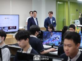 대통령은 먼저, 게임분석실을 들려 학생들이 다양한 게임을 체험하고 수요자 입장에서 게임의 특징, 구성 등을 분석하는 모습을 둘러보았다. 또한, 경기게임마이스터고에서 자체 개발한 ‘디지털 기반 학습 및 취업지원 시스템’*에 대한 설명을 들었다.