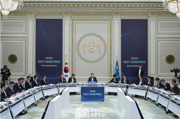 [중앙뉴스라인, 우제헌기자] 윤석열 대통령은 7월 4일 오전 청와대 영빈관에서 ?2023년 하반기 경제정책방향?에 관한 제18차 비상경제민생회의를 주재했다.