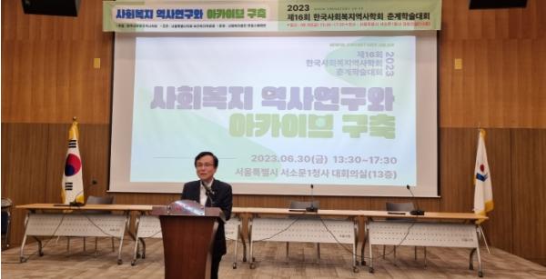 강석주 위원장은 축사를 통해 “한국사회복지역사학회 정관에 명시된 ‘사회복지 관련 단체, 법인 및 시설 등의 역사 기록’과 ‘사회복지 아카이브의 설치’라는 사업목적에 부합하는 의미 있는 주제로 진행되는 학술대회에서 축사하게 되어 감회가 새롭다”라며 “빠르게 변화되는 시대에 발맞춰 사회복지를 새롭게 전환해 나아가기 위해서는 과거의 기록을 목록화하고 그룹화한 체계적인 보관이 반드시 필요하다. 따라서 디지털 아카이브가 구축된다면 생생한 사회복지의 역사와 성과를 통해 사회복지의 현장성과 전문성을 더욱 높일 수 있으리라 생각한다”라고 했다.