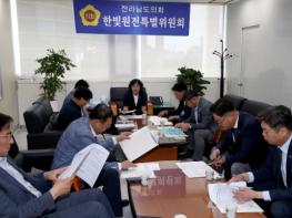 한편, 한빛원전 특별위원회는 장은영(비례), 모정환(함평), 김문수(신안1), 조옥현(목포2), 박문옥(목포3), 나광국(무안2), 정길수(무안1), 최정훈(목포4), 정철(장성1), 박원종(영광1) 의원 등 10인으로 구성됐으며, 원전 안전에 대한 종합적이고 다각적인 대안을 마련하고 지역공동체를 위한 범정부 지원?소통 체계 구축을 위해 활동할 예정이다.