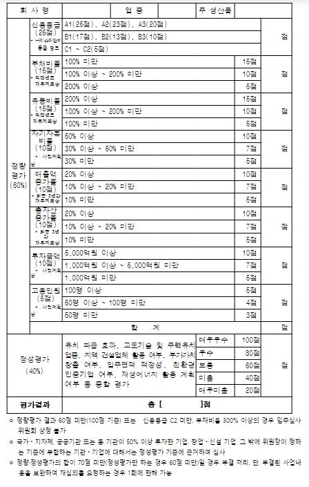 개정된 운영규정에는 재정 건전성 등 기업의 경쟁력 심사를 위한 평가기준(정량·정성) 신설, 지자체 과장급이었던 당연직 위원의 직위를 국장급으로 격상, 안전·환경·재무 분야별 전문위원 위촉 등의 내용을 담았다.