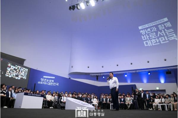 이날 회의는 ‘청년과 함께 바로 서는 대한민국’을 부제로, 중앙과 지방 청년정책조정위원회 위원, 각 부처 청년보좌역과 2030자문단, 청년인턴 등 윤석열 정부 청년정책의 수립과 국정운영에 참여하고 있는 청년들과 정부 관계자 등 약 650명(온라인 비대면 참여 210여 명 포함)이 모여, 대한민국 청년의 현재와 미래에 대한 의견을 나누기 위해 마련됐다.