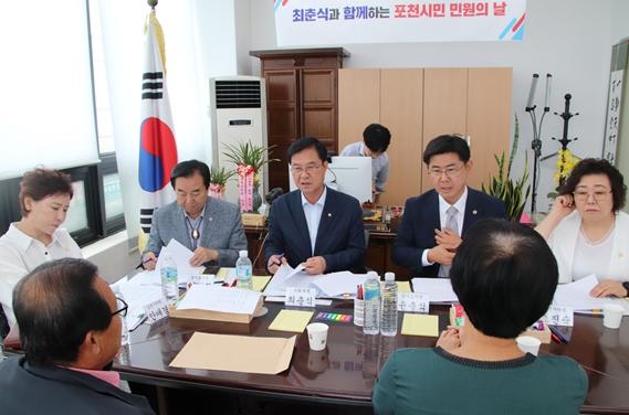 민원인으로는 포천일고, 포천시어린이집연합회, 모범운전자협회 등이 참석해 최춘식 의원에게 각종 건의사항을 전달했다.