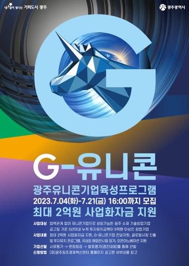 광주광역시는 ‘G-유니콘’ 광주유니콘기업육성프로그램에 참여할 광주지역 내 창업기업을 오는 21일까지 모집한다.
