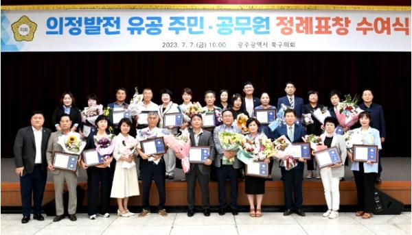 [중앙뉴스라인, 백흥순기자] 광주 북구의회는 지난 7일 3분기 정례표창 수여식을 개최하고 지역사회와 의정 발전 공이 있는 주민과 공무원에 대해 표창장을 수여했다고 밝혔다.