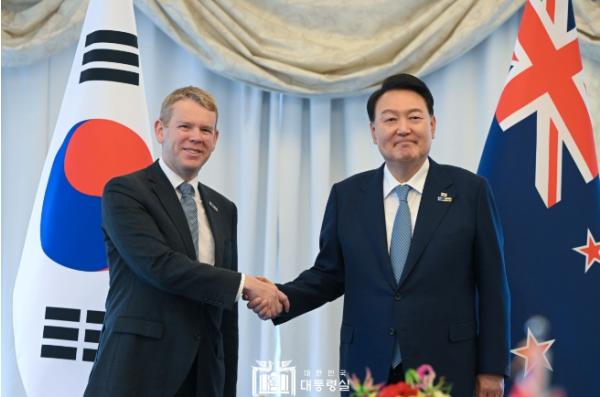 [중앙뉴스라인, 우제헌기자] 윤석열 대통령은 북대서양조약기구(NATO) 정상회의 참석 계기에 7.11(화) 오후 크리스 힙킨스(Chris Hipkins) 뉴질랜드 총리와 정상회담을 개최했다.