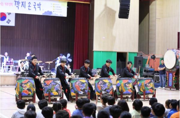 먼저 전남도립국악단과 협력해 진행 중인 움직이는 가무악희 ‘깍지 손 국악’은 2021년 시작해 3년 차를 맞는 공연 프로그램으로, 평소 공연을 접하기 어려웠던 학생들에게 뜨거운 반응을 얻고 있다.
