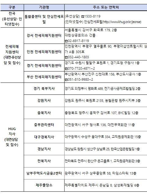 한편, 전세사기로 어려움을 겪고 있는 임차인은 거주지 관할 시?도에 피해자결정 신청을 할 수 있고, 위원회 의결을 거쳐 피해자로 결정된 자는 HUG 전세피해지원센터(대면?유선) 및 지사(대면)를 통해 지원대책에 대한 자세한 안내를 받을 수 있다