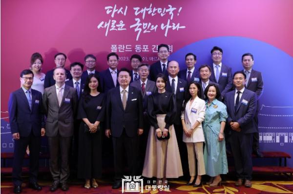 윤 대통령은 수교 직후부터 주재원, 학계 인사, 문화 예술인을 중심으로 형성된 폴란드 동포사회가 상부상조하는 문화를 정착시켰다고 했다. 윤 대통령은 폴란드 동포사회가 코로나 유행 당시 솔선수범하여 긴급 귀국과 백신접종에 나서고, 우크라이나 침공을 피해 피난 온 고려인 동포와 우크라이나 난민들에게 숙식과 생필품을 지원한 사례를 언급하며, 앞으로도 서로 화합하고 도우면서 멋진 동포사회를 가꾸어 나가기를 바란다고 했다.