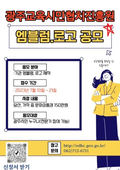 한편 이번 광주교육시민협치진흥원 상징물 공모의 자세한 신청 방법은 광주교육시민협치진흥원설립추진단 누리집에서 확인할 수 있다.