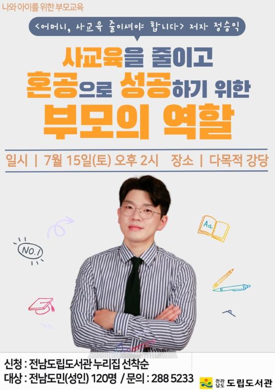 박용학 전남도립도서관장은 “급변하는 교육환경에서 자녀교육에 어려움을 겪는 도민에게 도움이 되길 바란다”며 “부모 역할과 자녀교육을 고민하는 도민을 위한 유익한 강연을 꾸준히 마련하겠다”고 말했다.