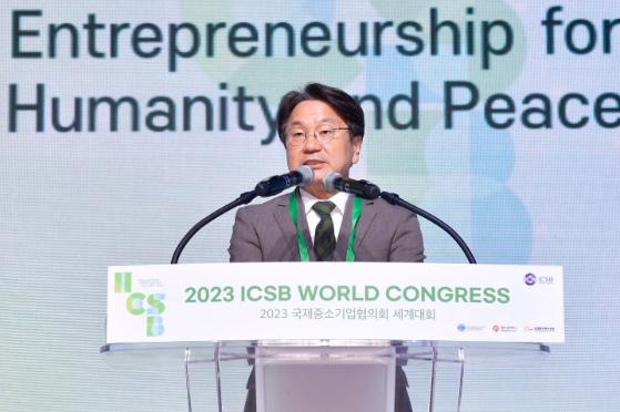 이어진 축사에서 이영 중소벤처기업부 장관은 영상을 통해 “2023 세계중소기업협의회 세계대회를 준비한 광주시와 ICSB의 노력에 축하와 감사를 표한다”며 “소상공인·전통시장과 스타트업·청년 기업가에 대한 전폭적인 지원을 아끼지 않고, 기업의 탄소중립 전환과 이에스지(ESG : 환경·사회·투명) 경영 확산을 뒷받침하겠다”고 밝혔다.
