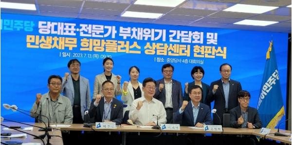 민주당은 13일 오전 부채 문제로 극단적인 선택을 하는 가구들이 늘어나고, 빚을 갚으면 생계가 어려운 국민이 300만 명에 육박하는 현실을 민생부채 위기상황으로 진단하고 이를 해소하기 위한 방안으로 민생부채 상담센터를 열었다.