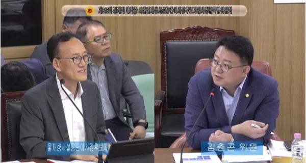 김 의원은 서울시 절반의 물재생센터(하수처리장)를 관리하는 공단 이사장 후보의 기술적인 역량을 검증하기 위해 서남물재생센터 입구에 설치된 방류수 수질 알림 전광판 항목들의 구체적인 내용에 대해 질의하며, 현재 표기 방식은 전문적으로 공부한 사람들만 알 수 있고 일반 시민들은 알기 어렵게 돼있다고 말했다.