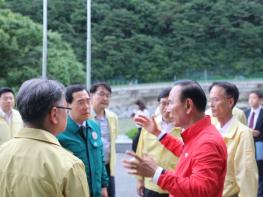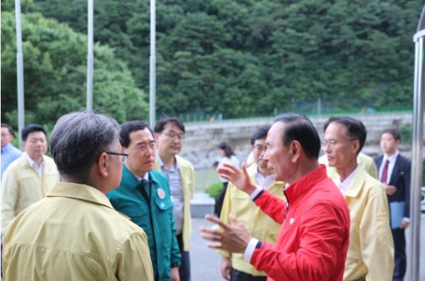 사흘째 동남4군에 머물며 상황 챙기는 박덕흠 위원장, 산자부 장관 및 관계자와 괴산댐 점검 나서!