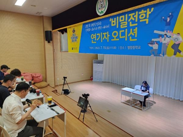[중앙뉴스라인, 차행운기자] 전라남도교육청이 제작을 추진 중인 학교폭력 예방 영화 ‘비밀전학’의 연기자 오디션이 지난 7월 15일 순천 별량중학교에서 학생 연기자 31명, 교원 연기자 15명이 참가한 가운데 성황리에 종료됐다.