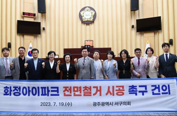 [중앙뉴스라인, 백흥순기자] 광주광역시 서구의회는 19일 제313회 임시회 중 '화정아이파크 전면 철거 후 재시공 촉구 건의안'을 발표했다고 밝혔다.
